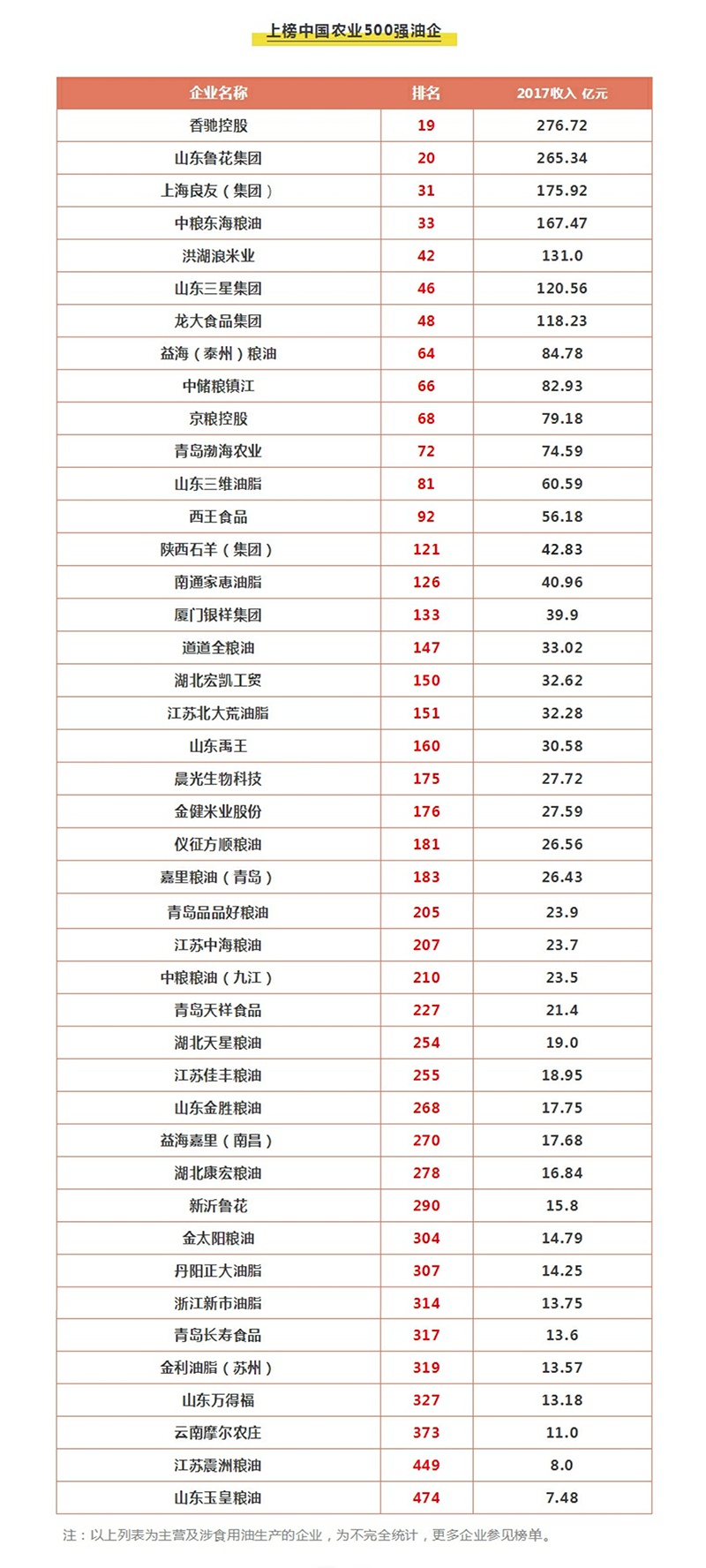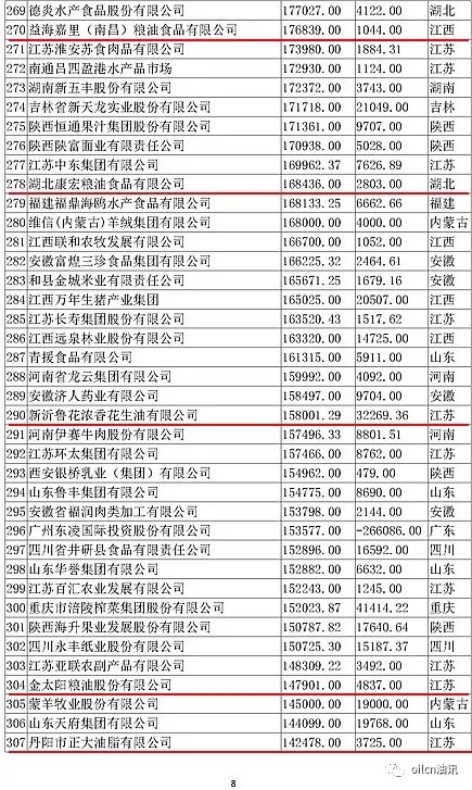 本次入圍門檻為6.7億元,多家主營油脂業務的企業上榜,山東、江蘇兩省入圍油企數量最多。