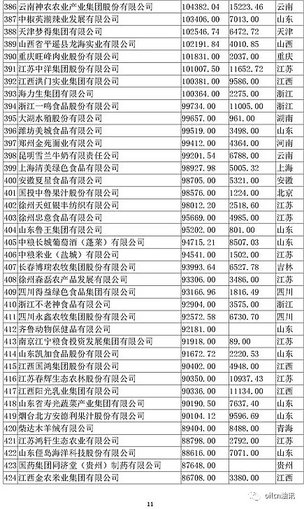 附:農業500強全榜單
