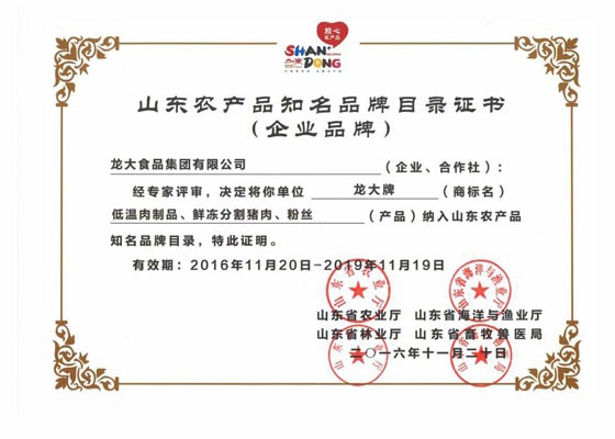 龍大集團三產(chǎn)品入選山東農(nóng)產(chǎn)品知名品牌目錄