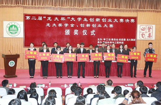12月11日,山東農(nóng)業(yè)大學(xué)食品科學(xué)與工程專業(yè)學(xué)生董銘、李秀清等35名學(xué)子,在“龍大獎學(xué)金、創(chuàng)新創(chuàng)業(yè)大賽”頒獎儀式上領(lǐng)到了龍大食品集團有限公司頒發(fā)的獎學(xué)金,獲得龍大集團獎勵的還有10個大學(xué)生創(chuàng)新創(chuàng)業(yè)團隊。
