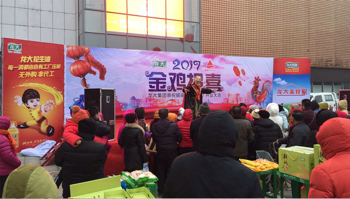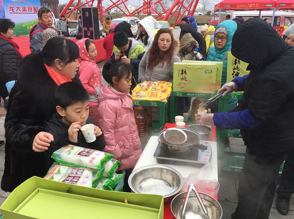 1月7日—9日,銀座萊陽店門前廣場喜氣洋洋。龍大集團組織旗下植物油、肉食品兩大內(nèi)貿(mào)產(chǎn)品進行為期3天的路演,為銀座萊陽店開業(yè)助力。